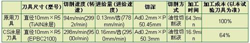 表3 用CS涂層刀具高速加工塑料模具材料PXZ時加工費用縮減情況