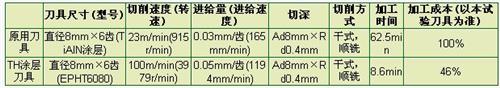 表2 用TH涂層刀具高速加工拉伸模材料SKD11(60HRC)時加工費用縮減情況