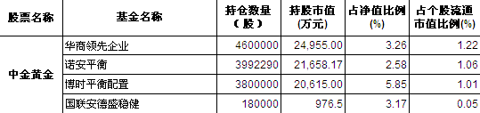 中金黃金被四只基金持有,排在第三位。其股價9月1日到11月12日共上漲28.72%,漲幅也很可觀。