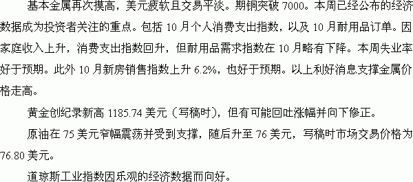 11月26日蘇克敦金融(Sucden Financial)金屬評論