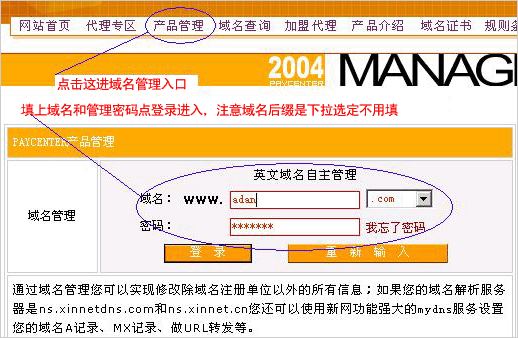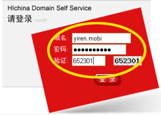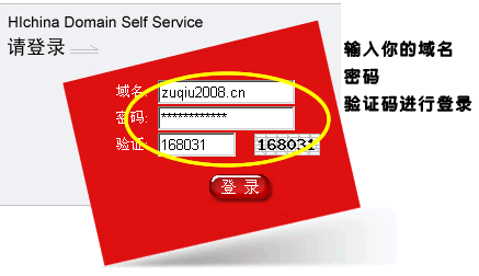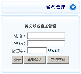打開 http://mgt.dns.com.cn 網(wǎng)頁,輸入域名和域名管理密碼登錄,如下圖 |