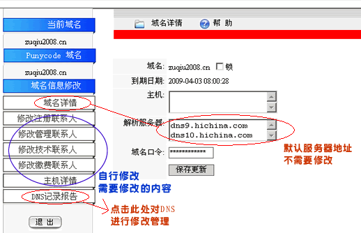 登錄后,進(jìn)入如下頁面,用戶就可以做域名管理了: |