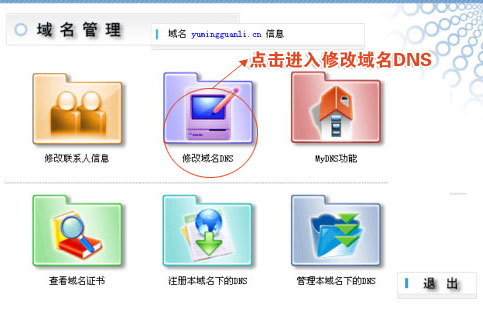 第二步 ---也就是修改的 DNS 生效后,我們再次登錄到域名管理主菜單,進(jìn)入第二項(xiàng)的 "MyDNS 功能 " 。 |