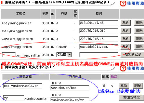 二、域名CNAME記錄、URL轉(zhuǎn)發(fā)做法,如下圖: |