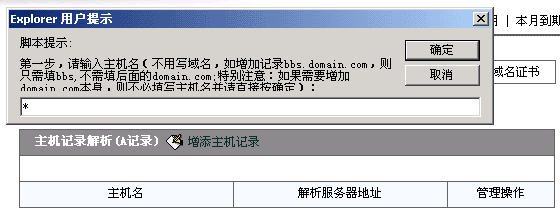 2>點(diǎn)擊"增添主機(jī)記錄",然后在彈出的框內(nèi)輸入"*",注意,不能輸入"*.hzhost.com"。如下圖所示:
