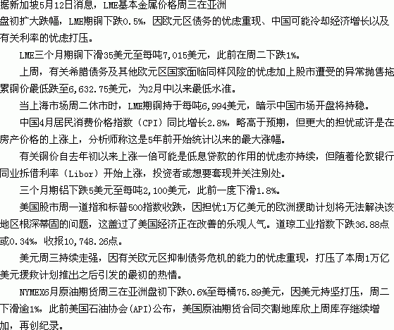 基本金屬亞洲盤初走低,因歐元區(qū)債務(wù)憂慮持續(xù)