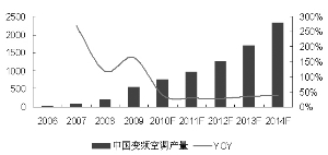 據(jù)悉,日本于1983年首先在世界上推出第一臺(tái)變頻空調(diào),至2009年變頻空調(diào)已占日本市場的99%以上,而在歐美等發(fā)達(dá)國家的普及率也在 80%以上。而節(jié)能空調(diào)對(duì)高性能釹鐵硼永磁材料的防腐蝕性能要求極高,如全球領(lǐng)先的空調(diào)生產(chǎn)企業(yè)――日本大金要求對(duì)高性能釹鐵硼永磁材料采用國際領(lǐng)先的真空鍍鋁技術(shù)。當(dāng)前,我國空調(diào)市場上80%的空調(diào)均屬于2級(jí)以下的定頻空調(diào),我們預(yù)計(jì)我國變頻空調(diào)的產(chǎn)量增速將快于整體的空調(diào)產(chǎn)量增速,未來將整體保持年復(fù)合增長率30%以上的速度。