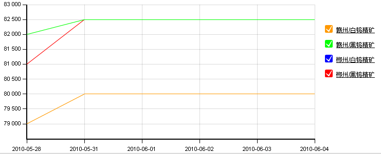本周一的時候贛州和郴州地區(qū)將白鎢、黑鎢精礦價格上調(diào)。郴州、贛州白鎢精礦均上漲1000元至79000-81000元/噸。郴州黑鎢精礦上漲1500元/噸,至82000-83000元/噸,贛州黑鎢精礦上漲500元/噸,至81000-84000元/噸。