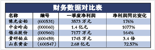 其中,焦作萬方(000612,股吧)一季度凈利潤漲6.9倍,達到1.8億元;貴研鉑業(yè)(600459,股吧)一季度凈利潤同比增長3.4倍,達到1745萬元。
