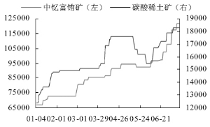 盡管基本金屬價格目前已在底部區(qū)域,但是需求前景尚不明朗。相比之下,稀土等小金屬的需求則較為確定,將持續(xù)受到新能源行業(yè)的正面推動。上周雖 然基本金屬價格下跌,但是稀土價格加速上漲,其中標桿產(chǎn)品氧化釹和氧化鐠分別上漲3.9%和5.1%;中重型稀土中,今年以來漲幅最大的氧化鏑上周繼續(xù)上 漲8.4%。