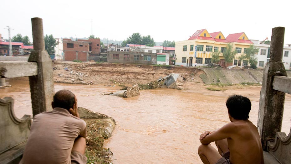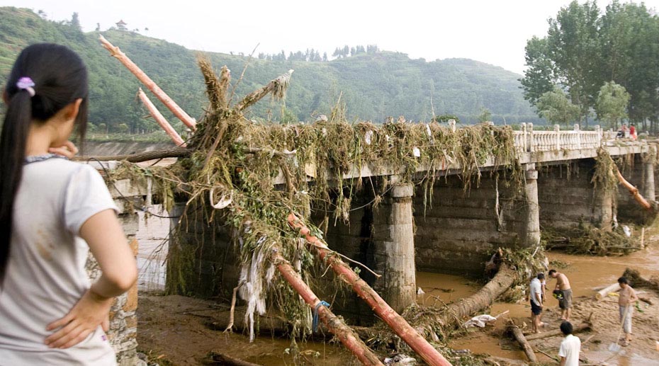 7月23日8時至25日8時,地處中原腹地的河南省遭強降雨襲擊,致使部分地區(qū)房屋倒塌、良田被毀、通訊中斷。河南省防汛抗旱指揮部25日公布的消息稱, 受降雨影響,該省丹江荊紫關(guān)水文站24日15時洪峰水位217.59米,洪峰流量10000立方米每秒,為新中國成立以來最大;老灌河西峽水文站24日 17時30分洪峰水位84.31米,洪峰流量7380立方米每秒,亦為1949年以來最大。伊河陸渾水庫25日8時水庫蓄水位320.77米,超歷史最高 水位1.9米。中新社發(fā)王中舉 攝