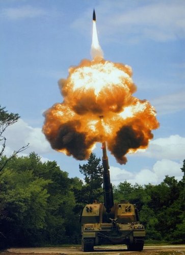 中國PLZ05型155mm自行加榴炮開火圖