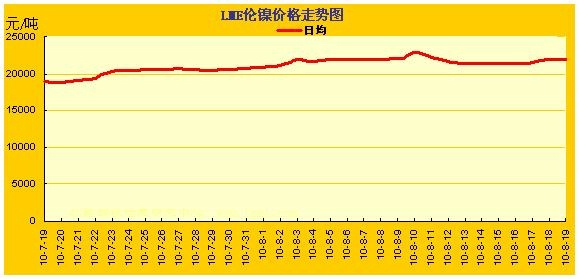 2010.7.19~2010.8.19LME鎳金屬價格漲跌曲線圖