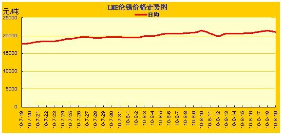 2010.7.19~2010.8.19LME錫金屬價格漲跌曲線圖