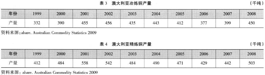 澳大利亞有3座銅冶煉廠和3座銅精煉廠,分別是芒特艾薩銅冶煉廠、奧林匹克壩銅冶煉廠、肯布拉港(Port Kembla)銅冶煉廠、奧林匹克壩銅精煉廠、肯布拉港銅精煉廠和湯斯維爾(Townsville)銅精煉廠。各冶煉廠與精煉廠的產(chǎn)能和所屬公司見表6。
