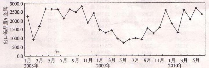 圖1 2008年1月-2010年6月出口鎢品量