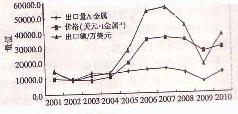圖2 2001-2010年上半年鎢品出口走勢