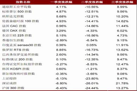 圖為全球主要股指三季度表現(xiàn)回顧表