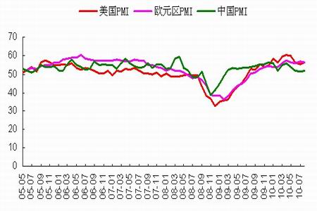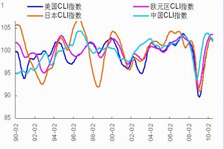 首先,從OECD領(lǐng)先指標(biāo)來看,全球主要經(jīng)濟(jì)體增速放緩態(tài)勢(shì)基本確認(rèn)。美國(guó)與中國(guó)等亞洲國(guó)家出現(xiàn)掉頭下降,日本與德國(guó)還在上行中,但由于兩個(gè)國(guó) 家復(fù)蘇的基礎(chǔ)是出口,隨著新興經(jīng)濟(jì)體的增長(zhǎng)放緩,兩個(gè)國(guó)家的上行趨勢(shì)能否保持依然存在較大的疑問。當(dāng)前,全球經(jīng)濟(jì)的系統(tǒng)性風(fēng)險(xiǎn)在減少,但經(jīng)濟(jì)復(fù)蘇放緩卻也 是不爭(zhēng)的事實(shí)。一方面,歐洲債務(wù)危機(jī)得到緩解,危機(jī)國(guó)成功發(fā)行債券籌措到資金,歐洲銀行業(yè)也通過了壓力測(cè)試;而另一方面,隨著刺激政策效果的消退,美國(guó)經(jīng) 濟(jì)復(fù)蘇的動(dòng)力明顯放緩。歐洲受惠于強(qiáng)勁出口的推動(dòng)亦難以延續(xù)至第四季度。失業(yè)、收入、財(cái)政赤字等長(zhǎng)期因素成為拖累經(jīng)濟(jì)持續(xù)復(fù)蘇的主因。這將導(dǎo)致發(fā)達(dá)國(guó)家進(jìn) 入持續(xù)高失業(yè)率、低增長(zhǎng)率的弱勢(shì)復(fù)蘇時(shí)期。