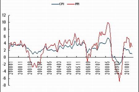 圖為中國(guó)通脹指標(biāo)CPI/PPI走勢(shì)圖