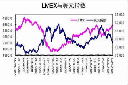 圖為LMEX與美元指數(shù)走勢(shì)圖