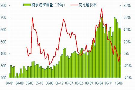 圖為中國(guó)銅表觀消費(fèi)走勢(shì)圖