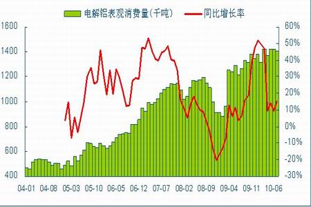 圖為中國(guó)鋁表觀消費(fèi)走勢(shì)圖