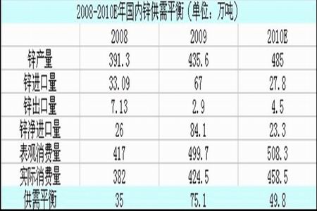 表3:2008-2010E年國(guó)內(nèi)鋅供需平衡