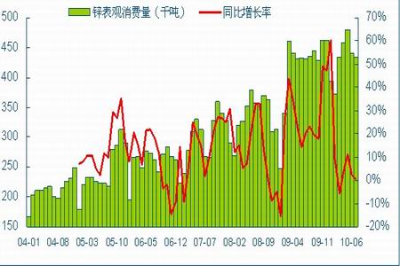從全球的情況來看,1-7月份全球鋅精礦產(chǎn)量同比增加13.5%,主要的增長(zhǎng)來自澳大利亞、中國(guó)、印度和墨西哥。精煉鋅產(chǎn)量同比增加 16.2%,而消費(fèi)量則大幅增加18.7%,消費(fèi)的主要增長(zhǎng)還是來自于中國(guó)、歐洲以及日本。2010年前7個(gè)月全球精煉鋅產(chǎn)量過剩15.1萬噸,同比下降 41%,顯示精煉鋅的過剩狀況有了明顯的好轉(zhuǎn),但庫存的消化仍需時(shí)日。