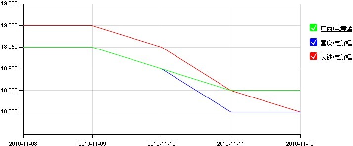 圖1:全國主要地區(qū)電解錳價格走勢圖(2010.11.08-2010.11.12)