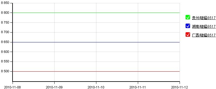 圖2:全國主要地區(qū)硅錳合金走勢圖(2010.11.08-2010.11.12)