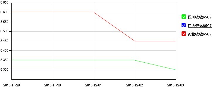 圖2:全國主要地區(qū)錳合金走勢圖(2010.11.29-2010.12.3)