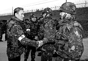 參加完就職儀式后,金寬鎮(zhèn)的第一件事就是飛赴延坪島,視察國(guó)防戰(zhàn)備情況。