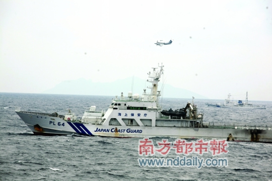 出現(xiàn)在中國護漁編隊附近的日本海上保安廳船只和飛機。南都特派記者周皓