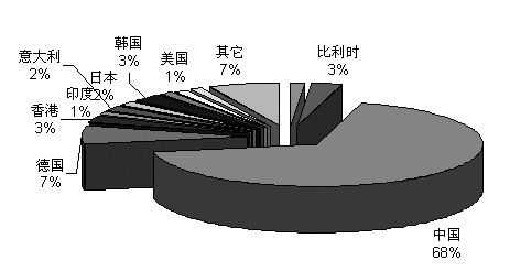 與廢銅的出口相比,廢銅的進(jìn)口十分集中:中國、德國、日本、韓國和比利時(shí)等國的廢銅進(jìn)口量就占了全球廢銅進(jìn)口總量的80%以上。作為全球制造業(yè)的重 心,2008年中國的廢銅進(jìn)口量達(dá)到557.7萬噸,占全球廢銅進(jìn)口總量的68%,是當(dāng)之無愧的全球第一。德國的廢銅進(jìn)口量僅次于中國,2008年的進(jìn)口 量為56.3萬噸,日本、韓國和比利時(shí)等國2008年的廢銅進(jìn)口量則在20萬噸左右。