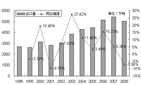 長期來看,全球的廢銅出口量一直處于增長之中,這與 廢銅回收量的增長是一致的。除了全球宏觀經(jīng)濟(jì)衰退導(dǎo)致廢銅出口量出現(xiàn)下降之外,在其余年份廢銅的出口量均實(shí)現(xiàn)了較大幅度的增長,2006—2008年期 間,全球廢銅的年出口量均超過了500萬噸(實(shí)物量)。從統(tǒng)計(jì)來源來看,由于出口廢銅的均是工業(yè)發(fā)達(dá)國家,因此我們有充足的理由相信,這些數(shù)量龐大的廢銅 均是高品位廢銅。