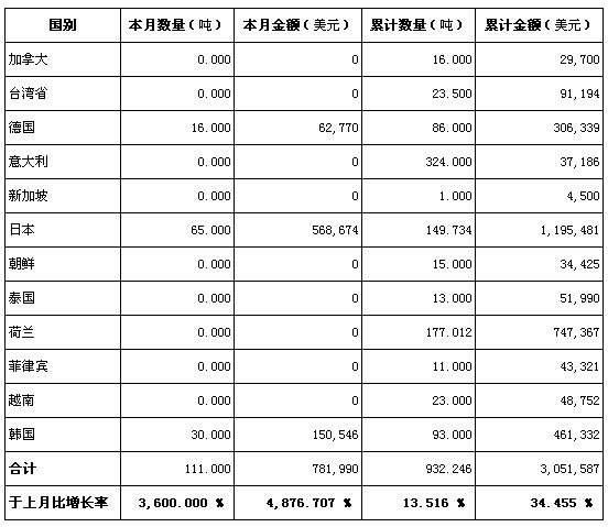 2010年11月份各國(guó)海關(guān)出口鈦鐵及硅鈦鐵分國(guó)統(tǒng)計(jì)