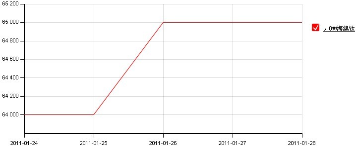本周海綿鈦價格在遵義鈦業(yè)的帶動下,價格上調(diào)。以下是其本周海綿鈦的行情走勢圖: