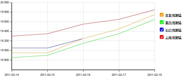 圖1:全國主要地區(qū)電解錳價格走勢圖(2011.2.14-2011.2.18)