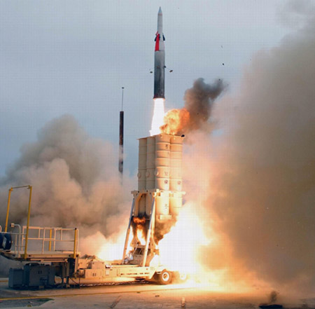 人民網(wǎng)北京2月24日電 (高軼軍)以色列和美軍共同開發(fā)的“箭”式反彈道導(dǎo)彈近日在美國(guó)加利福尼亞州進(jìn)行實(shí)彈測(cè)試,并取得圓滿成功。以色列國(guó)防部 發(fā)言人稱,“箭”式反彈道導(dǎo)彈在試驗(yàn)中,順利發(fā)現(xiàn)并擊落了美軍發(fā)射的模擬彈道導(dǎo)彈,并讓以軍具備了有效對(duì)抗敵國(guó)(主要是伊朗)戰(zhàn)略導(dǎo)彈威脅的能力。