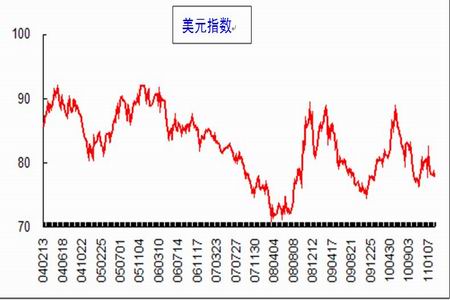 美元指數(shù)一直是衡量基金屬金融屬性的重要指標(biāo),二者之間呈反比例關(guān)系,總體上,自2010年7月以來,美元指數(shù)一直處于下行通道,2011年因 歐債危機(jī)美元對歐元微幅升值,但總體仍在走弱,2月上半月美元指數(shù)上漲1%,自15日開始下跌2%,2月1日以來本月累計(jì)下跌1%,這對后期銅(71880,490.00,0.69%)價企穩(wěn)走勢起到支撐作用。