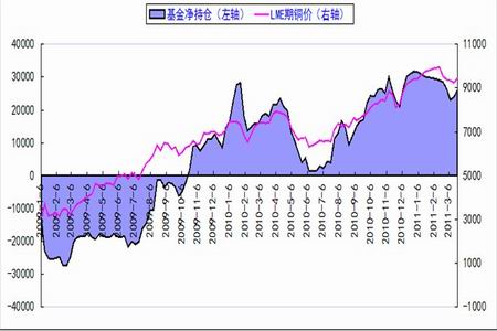 基金凈持倉與倫銅價格比圖