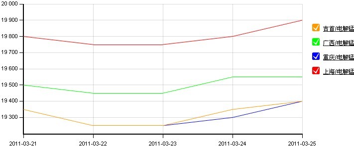 圖1:全國主要地區(qū)電解錳價(jià)格走勢圖(2011.3.21-2011.3.25)