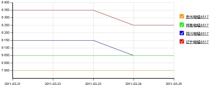 圖2:全國主要地區(qū)錳合金走勢圖(2011.3.21-2011.3.25)