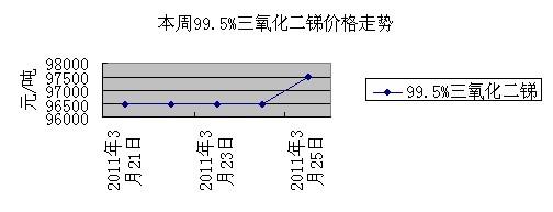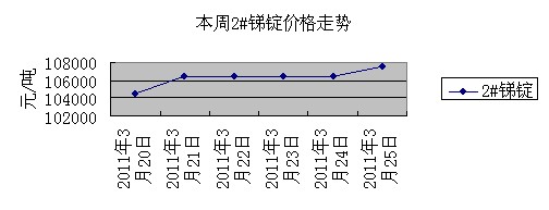價(jià)格對(duì)比: 2#:103000-106000元/噸 漲至 106000-109000元/噸 FOB出口:15800-17000美元/噸 持平 三氧化二銻:94000-99000 漲至96000-99000元/噸,更高價(jià)格在99500元/噸 FOB出口:14400-15100美元/噸 持平