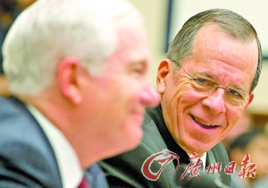 羅伯特-蓋茨和邁克-馬倫(右)向國(guó)會(huì)眾議院軍事委員會(huì)和參議院軍事委員會(huì)作匯報(bào)。