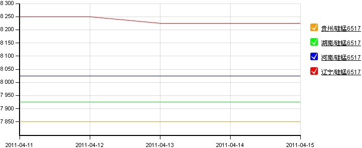 圖2:全國(guó)主要地區(qū)錳合金走勢(shì)圖(2011.4.11-2011.4.15)