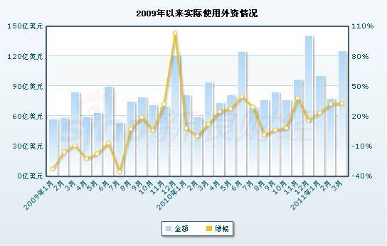 新浪財經(jīng)訊 據(jù)商務(wù)部統(tǒng)計,全國1-3月,實際使用外資金額303.4億美元,同比增長29.4%。3月當月,實際使用外資125.2億美元,同比增長32.9%。
