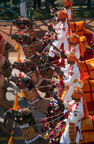 資料圖:印度駱駝騎兵參加閱兵