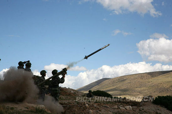 資料圖:解放軍駐藏部隊發(fā)射便攜式前衛(wèi)防空導彈